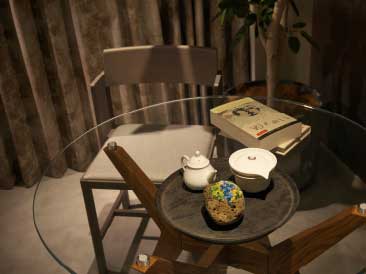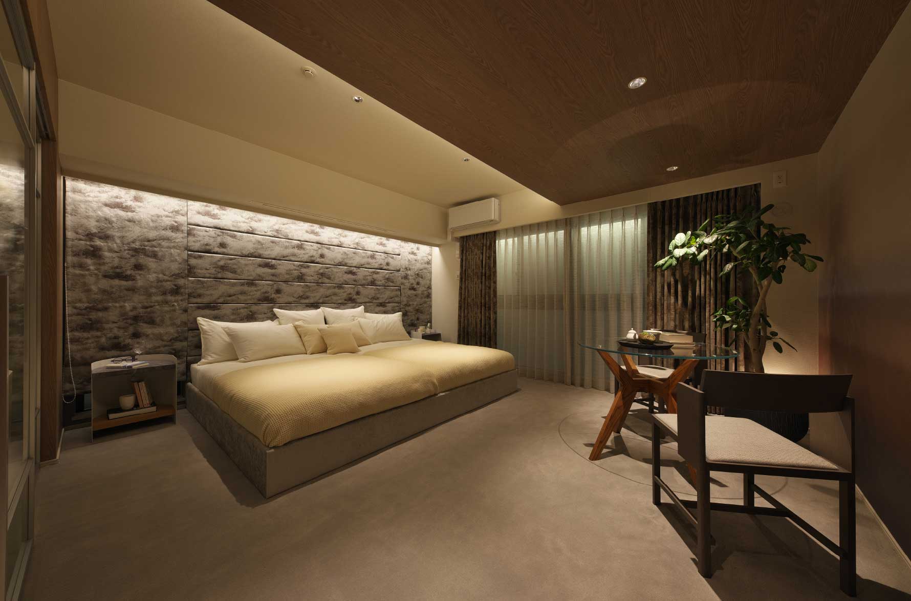 自然観を大切にしながら設えられた坪庭は、季節や天候、時の移ろいを感じさせ、中から眺めているだけで癒されるような穏やかな気持ちに。オーナーズラウンジのアクセントとなり、一日中眺めていたくなるような穏やかな佇まいです。