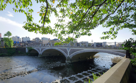 市中心部を流れる淺野川は、ゆるやかな流れから別名?女川とも呼ばれています。ひがし?主計(jì)町の茶屋街に挾まれ、周辺は何とも趣ある雰囲気で、とりわけ木造風(fēng)の梅ノ橋は風(fēng)情あふれるスポットです。橋の周辺は金沢三文豪の一人、泉鏡花の出世作『義血俠血』の舞臺(tái)にもなっており、たもとにはヒロイン?滝の白糸の碑がたっています。