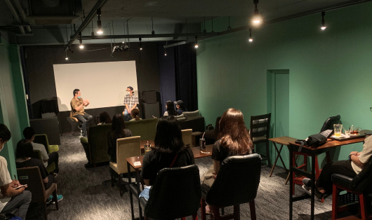 カフェのような小さなシアタールームが2つ。テーブルが設(shè)置されたカフェ席になっていて、ドーナツとドリンクを楽しみながら映畫を鑑賞できます。街の映畫館は、幅広い世代のコミュニティの場。上映作品のテーマごとに様々なゲストを招いてトークライブが催されるのも大きな特長で、オーナーに賛同した多くの著名人が登壇しています。