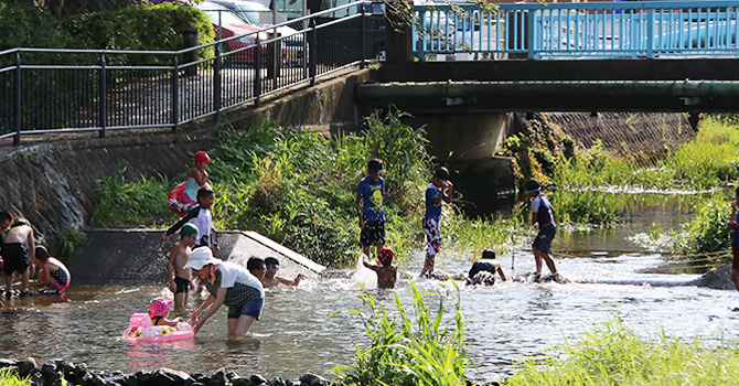落合川は今ではあまり見ることのない「ホトケドジョウ」などが生息するほど美しい水源で、夏に開催される「わくわく川掃除&川あそび」には1,000名もの子どもたちが集まるなど、遊びと學(xué)習(xí)が一緒になった教育の実踐の場になっています。