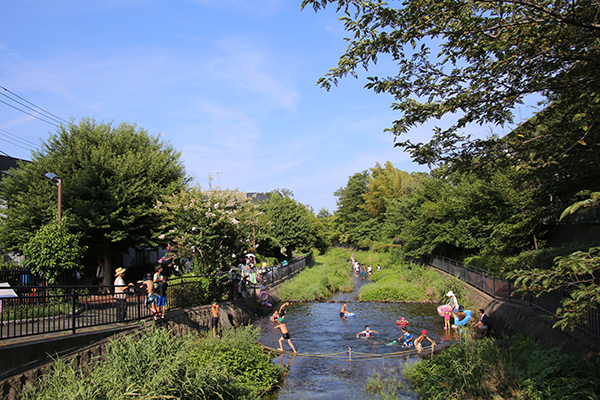 落合川上流は水が澄んでいて、のどかな景色が広がる。