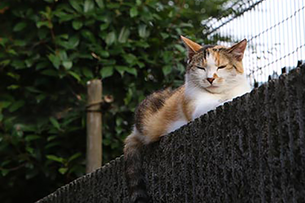 道すがら、ふと見上げると貓がなんとも気持ち良さそうにしていた。