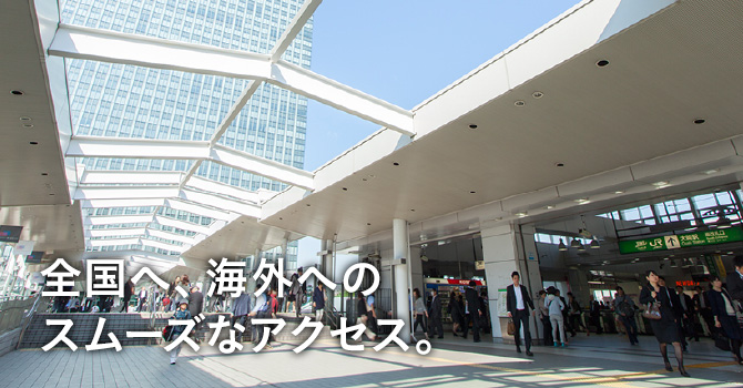 JR「大崎」駅から山手線で一駅の場所に位置する「品川」駅は、JR東日本の在來線(京浜東北線、橫須賀線、東海道線)と、京浜急行電鉄の本線が乗り入れるターミナル駅。さらに、九州?博多まで続く新幹線の停車駅、京急で羽田まで最短15分(通常時20分)という交通の利便性は、東京?南の玄関口と呼ばれるにふさわしい立地です。2027年の開業を目指す東京?名古屋間を結ぶ、リニア中央新幹線では、その始発駅に決定しました。品川はまさに、東京の未來を象徴する駅へと変貌しつつあります。