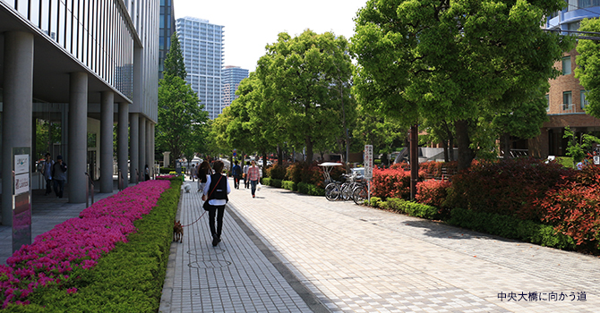 この都會的な建築デザインや街並デザインを見ていると、「こんな街に暮らしてみたい」という気持ちが湧き上がってくる。やはり都會的な佇まいこそが、佃エリアのステキの代表格と斷言していいのではないだろうか。