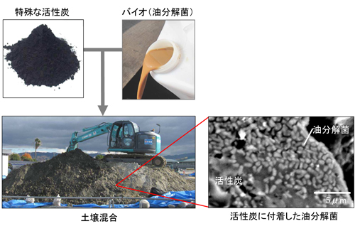 日本初 活性炭とバイオ(油分解菌)を組み合わせた