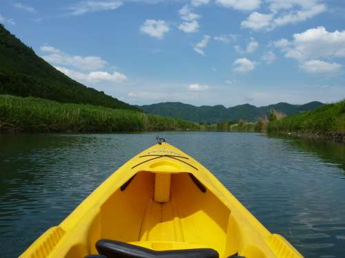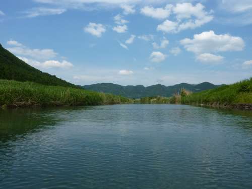 外輪山を見ながら、上流へ上っていくと、陸上とは違う