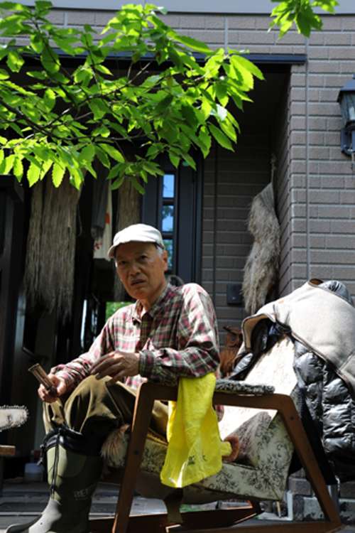 玄関先で日向ぼっこしながら何か作業中!