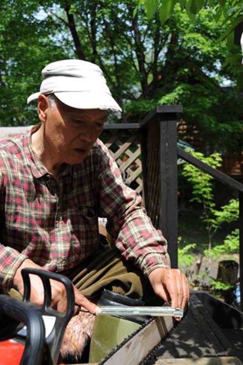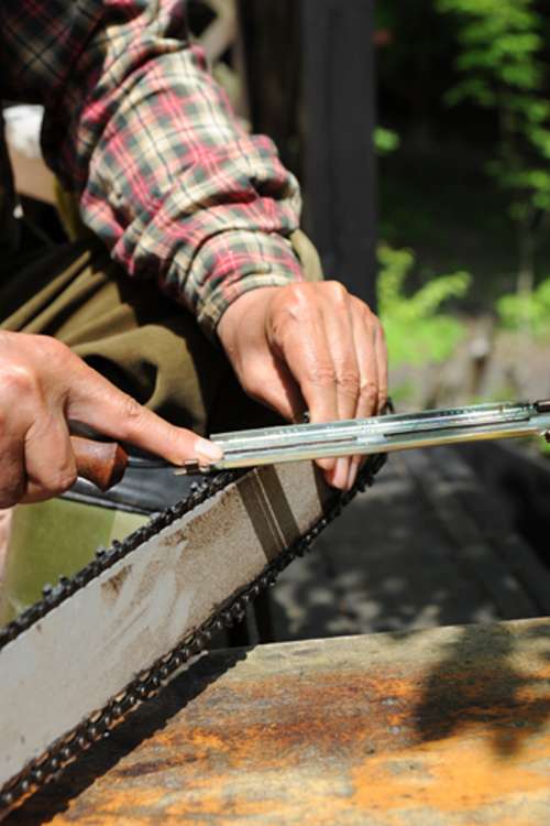 チェーンソーの刃を研いでいました