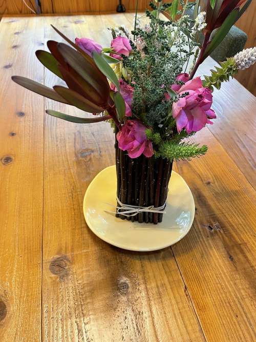 今回は剪定した枝を使ってフラワーベースを作ってみました。