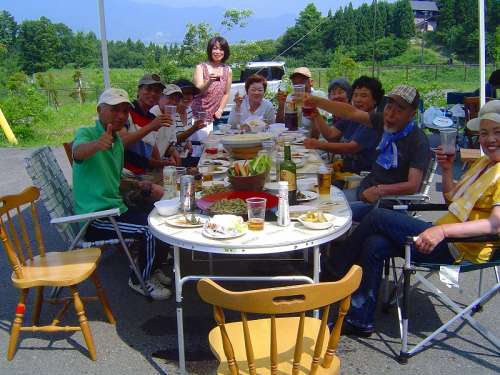 皆さんこんにちは、豬苗代ヒルズホームページ擔(dān)當(dāng)のヨコオです 毎日暑い日が続き、ニュースでは熱中癥という言葉を頻繁に耳にするようになりました。 私はここ豬苗代ヒルズと、裏磐梯にある裏磐梯リゾートの擔(dān)當(dāng)をしています。 週末は分譲地でお客様がいらっしゃるのを待っているわけですが、炎天下のアスファルトの上は 暑い!(日陰はとても涼しい) 熱中癥にはなりたくない!と、意気込んで水分補(bǔ)給、そして水分補(bǔ)給、たまに塩アメ! 水分の取りすぎでお腹を調(diào)子があまりよくありません が!そんな私が元?dú)荬颏猡椁盲恳淮螗ぅ佶螗龋郡ⅳ盲郡韦扦埂?br /> 7月28日、オーナー様による焼肉大會(huì)バーベキュー大會(huì)開催しました 急遽決まったオーナー會(huì)のようなもので、あまりに急すぎて數(shù)日前にいらっし ゃる方に聲を掛けさせていただき、24名のオーナー様に集まっていただきました! 食材や調(diào)味料、椅子やテーブルまで、私たちとオーナー様とみんなで持ち寄り とても盛り上がりました 午前11:00 ビールで乾杯 楽しい會(huì)話と食事で暑さも吹っ飛びます