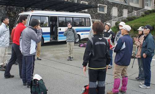早朝にもかかわらず、皆さん時間通りに阿蘇青少年交流の家に集合。