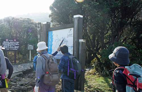とりあえず、天気もよいので記念撮影      再度、案內板でルートを確認。