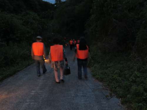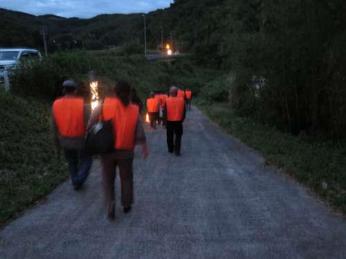 緩やかな坂道を下りながら川內川の岸辺まで向かいますが、ホタルは人口的な光を嫌うため