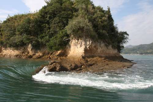 水軍城を築いた能島の周囲は、最大時速約18kにもなる潮流が渦巻き、