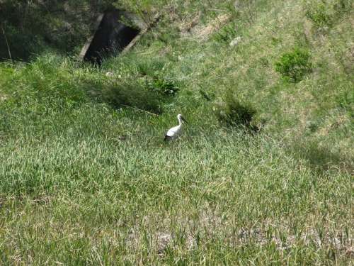 先日、宮城蔵王リゾート現地販売センター前の憩いの場所のベンチ付近に行くと、なんと 國の特別天然記念物であるコウノトリを見かけました