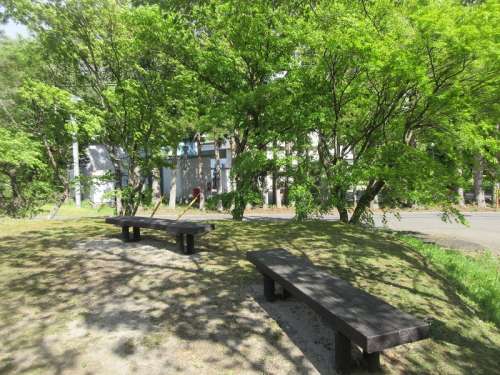 ■現地販売センター前の憩いの場所 現在新緑で大変綺麗です