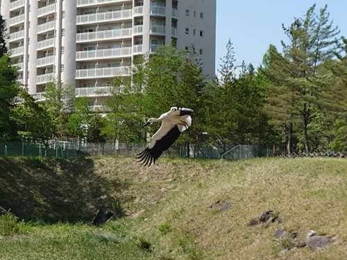 ■しばらく眺めていると、コウノトリが羽ばたいてきました
