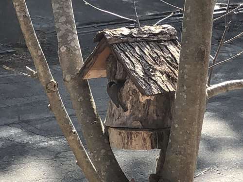 シェアサロンの窓からも巣箱が見えますが野鳥さんが巣箱に入る所を