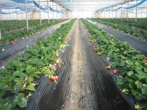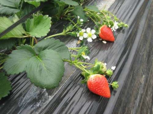 今がイチゴの最盛期。昨年9月に植えつけをしたハウスの苗が