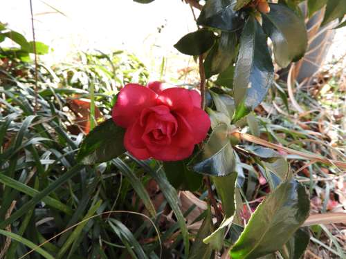 鮮やかな赤でしょう?溫泉街の、神の湯のところでみつけました。道路沿いですから、植栽されたものではあるのでしょうけれど。ところで、ひそやかに美しく咲いてるこの花の名前を私は紹介できません。 「椿」です。いや「山茶花」かな。 ぷっくりしてるのが椿、平たく咲くのが山茶花と、ものの本にはありますが、どっちにも見えますわね。花の落ち方でわかるって?あー、落ちてる花を見ないでしまいました。さきほどのツヤツヤ葉っぱとともに判明したらお知らせしますが、名前はともかく、現(xiàn)在のところはこの鮮やかな赤を楽しみましょう。