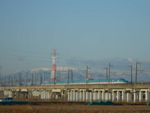 こちらは前回も話題にしましたが、仙臺(tái)からの蔵王の眺めです。 たまたま、新幹線が通過(guò)するところだったので「チャンス!」とばかりにシャッターを押しました。送電線の鉄塔や、新幹線の線路內(nèi)の柱がいかにも邪魔でございます。けれでも、東日本大震災(zāi)のときにたくさんの柱が線路內(nèi)に倒れていたこと、JRを始めとした関係するたくさんの方々の、晝夜を分かたず進(jìn)められた復(fù)舊作業(yè)により、思いの外早く営業(yè)が再開されたことを改めて思い出し考えるとき、平和なこの風(fēng)景がどんなにありがたいことかと、しみじみ感じます。そんなこんなを考えながら、E5系「はやぶさ」の美しいグリーンが冬の景色に彩りを添えてくれる景色を楽しみました。 寫真は令和2年1月撮影