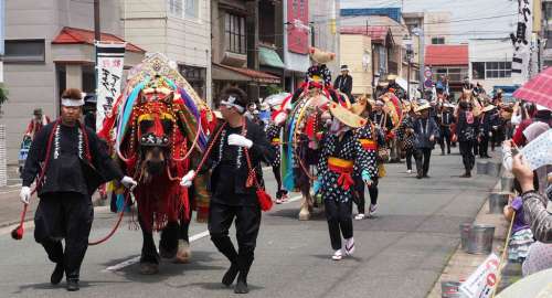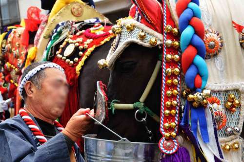 この祭りは“蒼前様”という馬の神様のお祭りで、春の農(nóng)耕で疲れた馬を癒す意味があるという