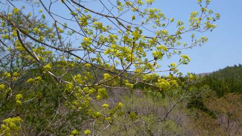 イタヤとは板屋根のように折り重なって葉が茂るから、葉がカエル手に似ているからとも。 秋には黃色い美しい紅葉になりますが、春の黃色い花が私は大好きです。