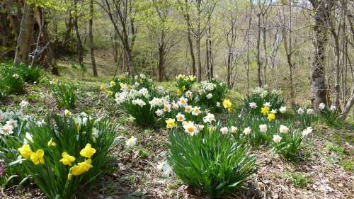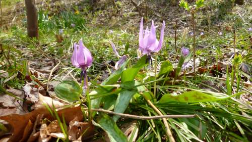 川音川に流れ込む小川では水仙が咲き始め、カタクリの花も殘っていました。