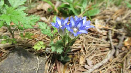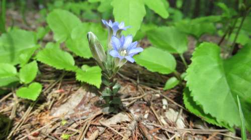 5月12日、あかまつ平の森の中にフデリンドウが咲きました。 春の高原に咲くリンドウで、笹が入り込んでいない比較的明るい場所を探すのがポイントです。 越年草なので、スプリングエフェメラルではありませんが、春に一瞬だけ咲く森の妖精です。