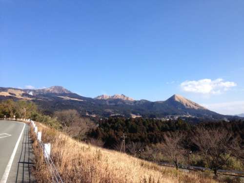 帰りの道中から見た阿蘇中岳?夜峰山が青空に映えてとても綺麗でした。