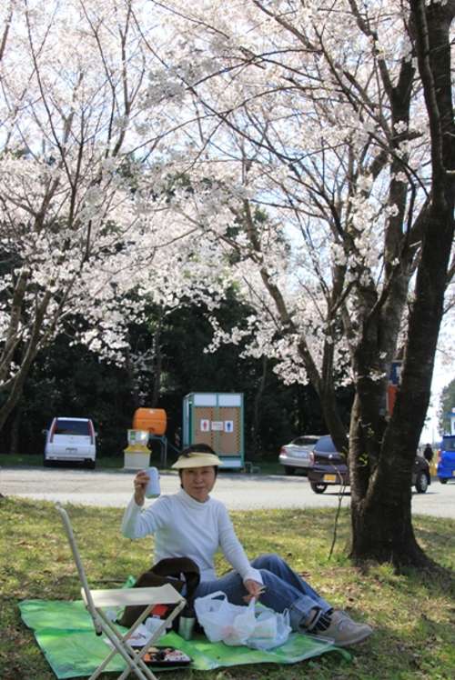 ビールで一杯!桜をこよなく愛する二人にとって至福の時でした。