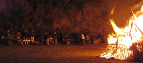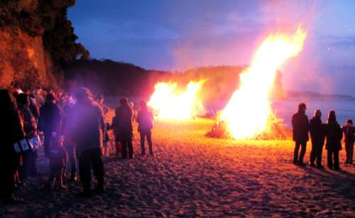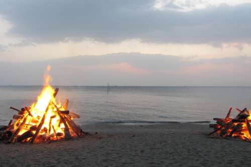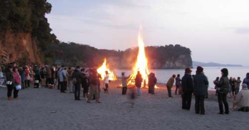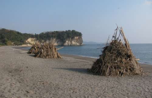 暮れの30日に、浜の3か所に薪を組み上げました。
