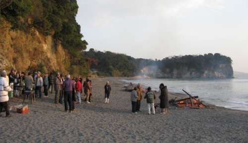 恒例の杵築リゾートの浜辺での『ご來(lái)光を祝う』の寫(xiě)真を