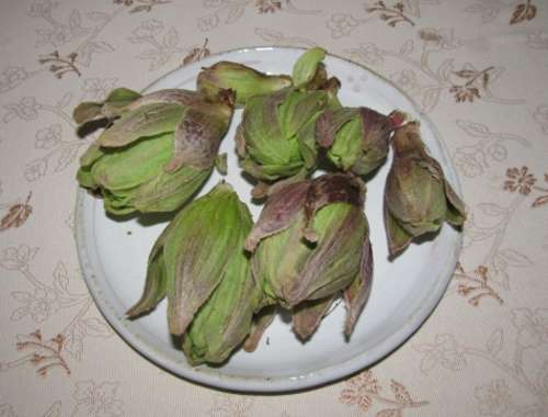 食べて美味しいのは、寫真のように、中の蕾が見える以前の袋狀に