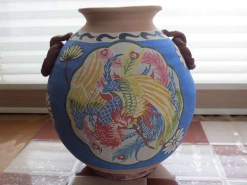 來る文化祭に出品のために素焼きをやって、絵付け彩色を施した