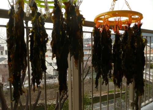 わかめも、まさか、豊中のマンションのヴェランダに干されるとは、
