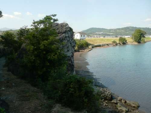 ■身投げ石全景です。てっぺんに松が生えています。