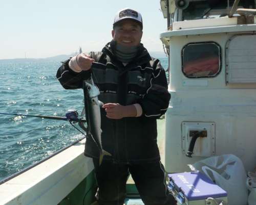 ◆店頭価格、1本8000円!?の大さばににっこり。昨春は若干船酔いもあり