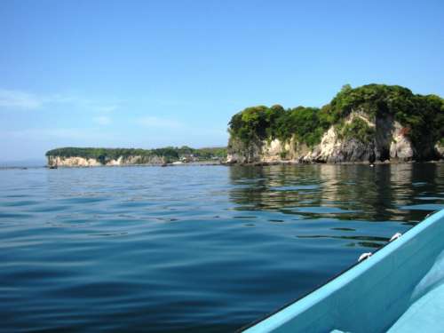 まいど、お気遣いのM様、釣りレポートばかりでは????と 慮っていただき、本日は、海から近場を探索していただきました GW直前の、風(fēng)も波もない、穏やかな一日でした。 係留地の加貫港を出て、北へ上り、リゾートの前に到著