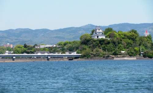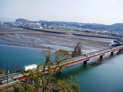 もともとは室町時代初期の木付氏の城で、長い歴史の由緒ある城 なのですが、慶長13年(1645年)、落雷で天守が焼失、以後、 復(fù)元されることもなく、城機能は北麓に移り、松平氏の時代に、 城郭を廃し、石垣だけが殘っていましたが、その天守臺跡に、 1970年、RC造の博物館と展望臺を兼ねた模擬天守のお城が 建てられたのでございます。 因みに、八坂川を遡るのがどれくらいしんどいのか、 お城から杵築大橋を撮った寫真がありましたので、ご參考ください。