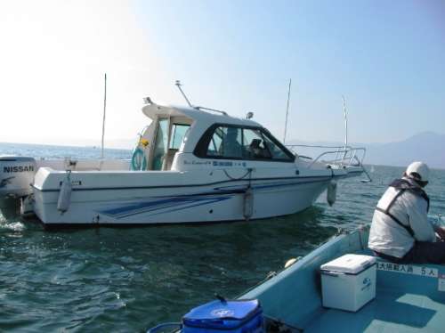 キンちゃんさんから、10時頃電話あり。 「釣れてますよ~!」と返事すれば、11時半近くに、 T山元區(qū)長とともに2隻で合流でございます。
