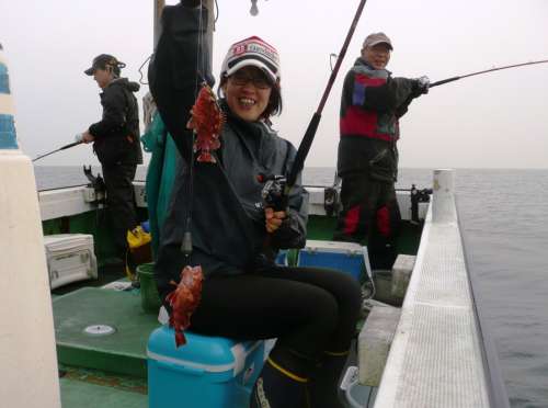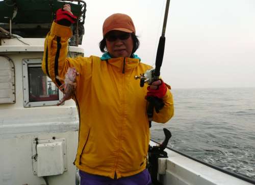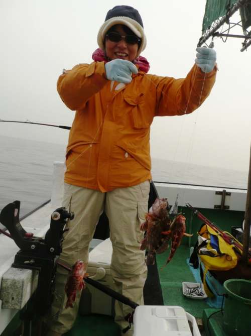 海の船釣りは初めてというN様の奧様の3名が女性釣り師です。