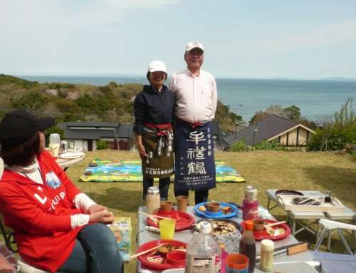 リゾートに縁あって集い、人生の黃昏時をともに楽しむ仲間に恵まれ、 そのようなチャンスをもたらせてくれたダイワハウスのタッフに感謝。 そして退職後もこのように訪ねてくれて、ともに、元気に遊ぶイリコに 感謝の目的で、『お花見會』を開いてくださったとのこと。