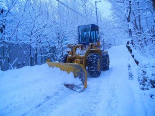 管理員が別荘地內の除雪作業を行なっています。