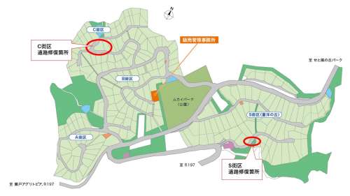 修復工事はC街區とS街區の道路2カ所