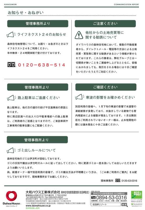 〇ゴミ庫にもコミュニケーションレポート2023年3?4月號は掲示いたします。