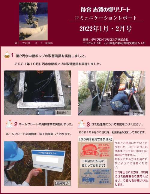 能登志賀の郷リゾート  コミュニケーションレポート 1?2月號を発行しました