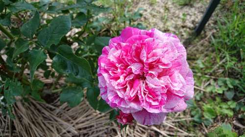 ローズピンクに白い絞りが入った薔薇