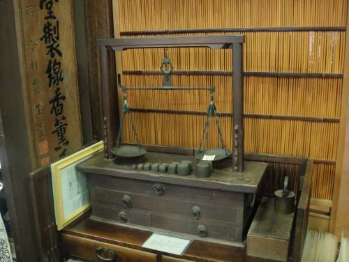 江戸時代から明治時代末頃までお茶を量るのに使っていた天秤も健在