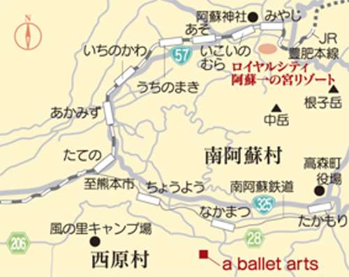 アクセス ロイヤルシティ阿蘇一の宮リゾートから約30km、車で約55分